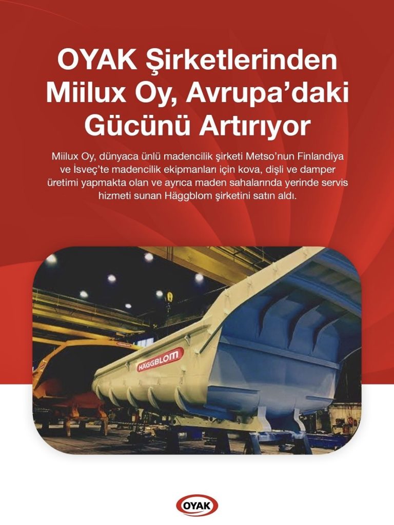 OYAK iştiraklerinden Miilux Oy, dünyaca ünlü madencilik şirketi Metso’nun Finlandiya ve İsveç’teki iştiraki Häggblom’u satın alarak madencilik ve ağır sanayi alanındaki konumunu güçlendirdi.